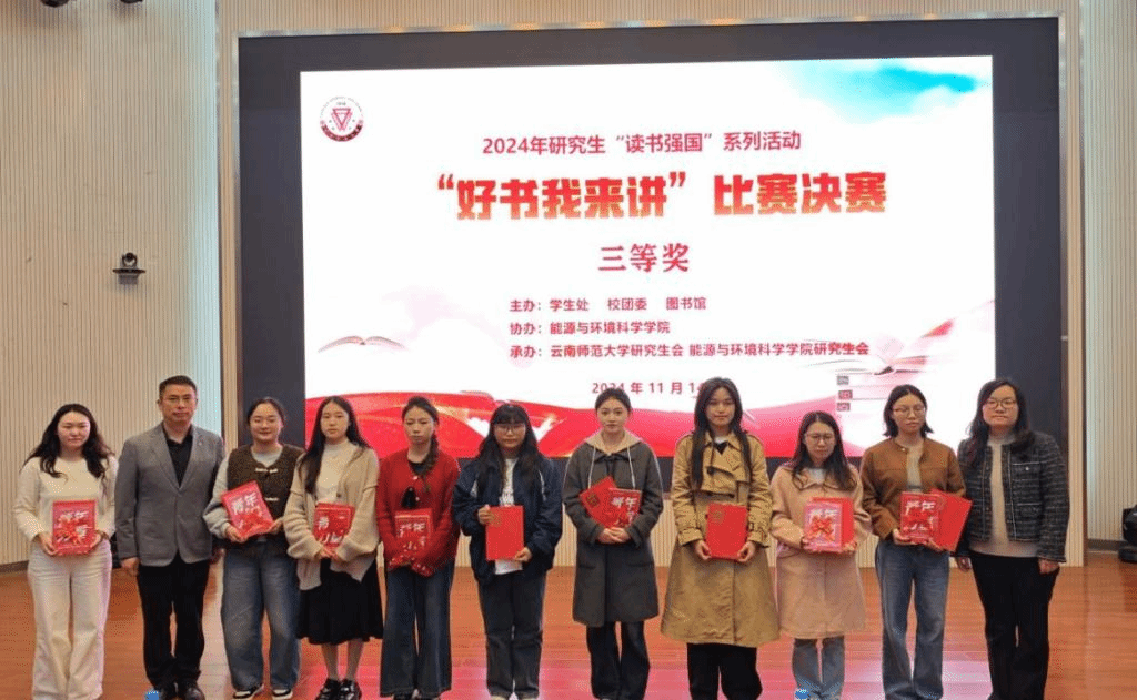 本次“好书我来讲”比赛是“读书强国”系列活动之一,由学生处、校团委、图书馆联合主办,能源与环境科学学院协办,云南师范大学研究生会、能源与环境科学学院研究生会承办,旨在引导全体同学提升阅读兴趣、养成阅读习惯、提高阅读能力,不断增强思想道德素质和科学文化素质,为强国建设贡献青春力量。