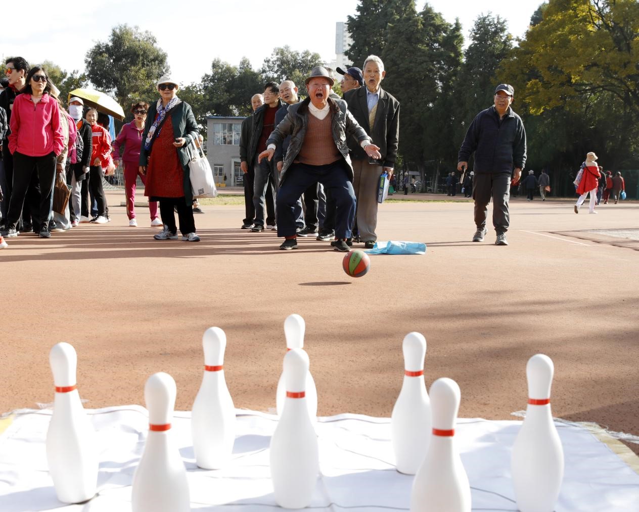 运动会期间,500余名老同志积极参与简易保龄球、飞镖投掷、定点射门、健步走等项目,现场气氛热烈。