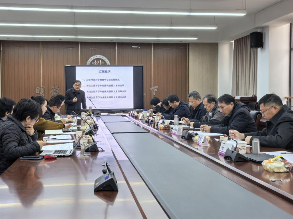 3月7日上午,云南师范大学教育学部在明德四号楼310会议室组织召开了"黄钰生教育学专业拔尖创新人才培养方案"同行专家论证会。会议特邀昆明理工大学罗黎辉教授、山西大学侯怀银教授、浙江大学孙元涛教授、天津师范大学和学新教授等省内外高校、中小学教育行政管理部门10余位专家,围绕人才培养方案的方向性、科学性、专业性、实施保障条件等方面展开深入研讨。学校教务处相关领导和科室负责人,教育学部领导班子成员、教育系系主任、教育学专业负责人、教育学专业高年级本科学生代表参加论证会。会议由教育学部副主任田莉主持。
