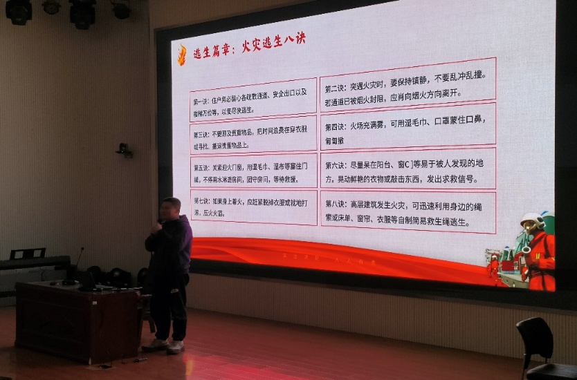 保卫处防火科科长肖潇在培训中详细讲解了火灾发生时的正确逃生方式和火灾中受伤的急救常识,希望平安校园志愿者服务队能最大限度地发挥校园防火骨干作用,用实际行动将日常防火工作做细做实。