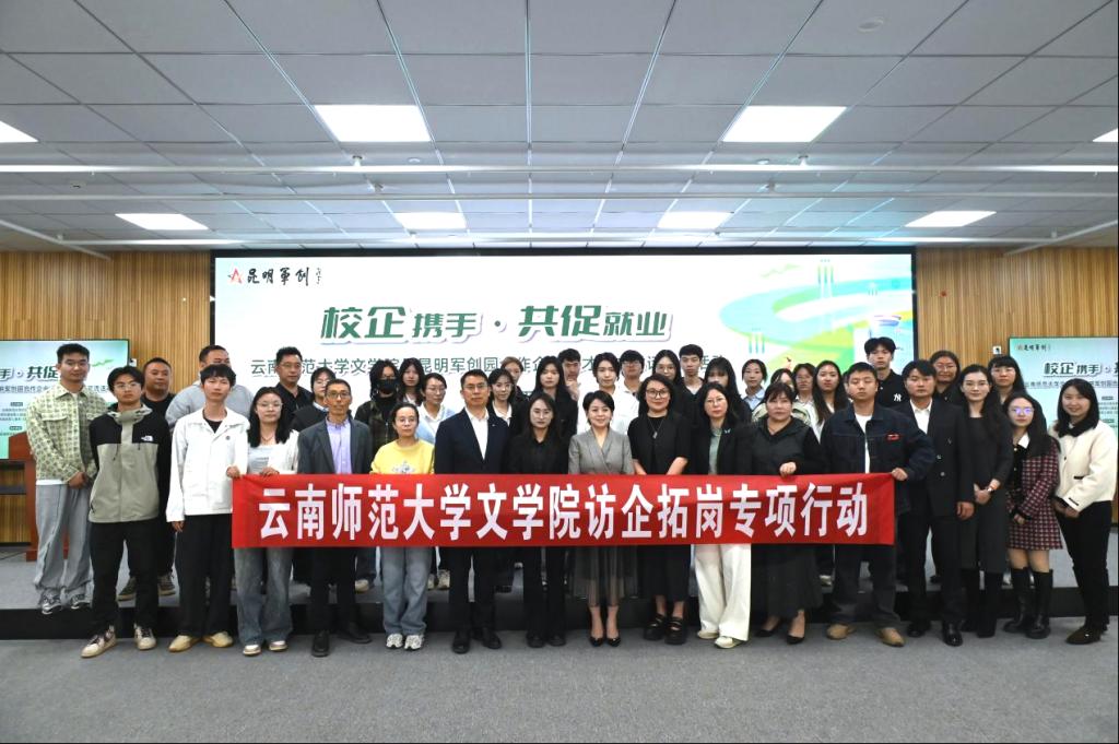 为贯彻落实教育部关于访企拓岗促就业专项行动的要求,深化校企合作、拓宽毕业生就业渠道,4月16日,文学院党委书记刘虹,党委副书记赵兴元、辅导员、班主任,30余名2025届毕业生走访昆明军创园开展人才供需对接工作。