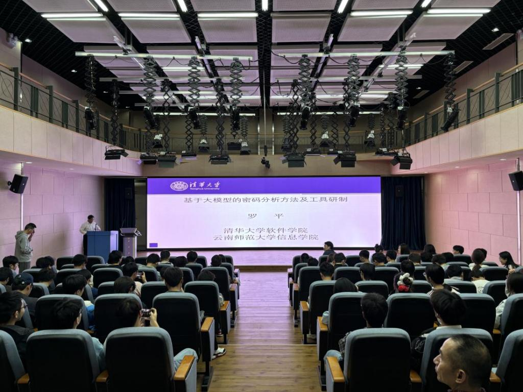 4月17日,信息学院银龄教师计划清华大学软件学院罗平教授在睿智4号楼412报告厅以“基于大模型的密码分析方法及工具研制”为题作学术报告。信息学院领导班子成员、教师、网络空间安全专业学生150余人聆听报告。学术报告会由信息学院院长袁凌云主持。