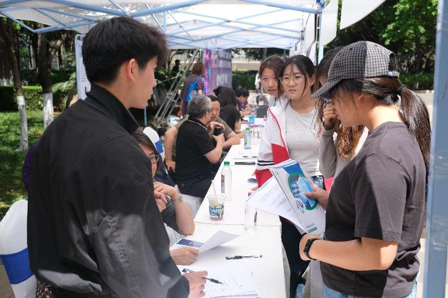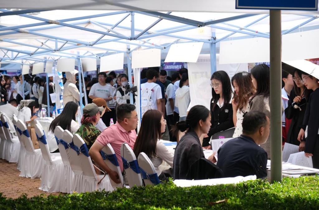 为助力2025届毕业生高质量就业,搭建校企供需对接平台,4月22日,云南师范大学经济类、管理类、法学与社会学类专场招聘会在呈贡校区明德1号楼前小广场举行。本次招聘会吸引了省内外70余家企业、事业单位,涵盖金融、管理、法律、社会工作等多个领域,累计提供就业岗位2000余个,吸引了近千名毕业生到场求职。