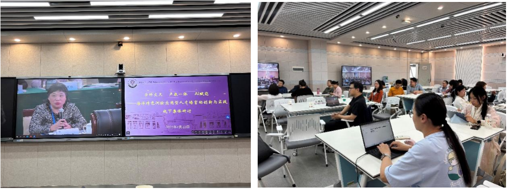 4月24日开展了首期活动,以"学科交叉 产教一体 AI赋能"为主题,分为两个阶段进行。第一阶段,集体观看了江苏省高校名师名课,月月观摩活动中江苏海洋大学及相关合作企业从专业、课程、企业三个维度介绍了其在产教融合一体化教学创新实践的先进经验、做法、成果。