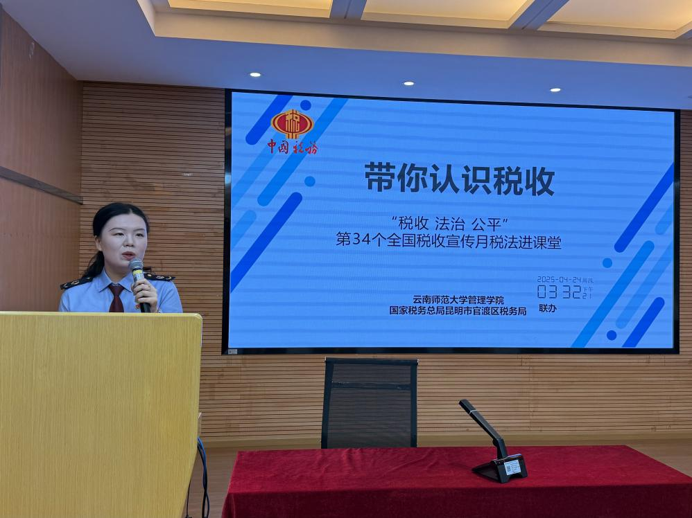 4月24日,云南师范大学管理学院党委与国家税务总局昆明市官渡区税务局机关党支部联合开展了以“税收 法制 公平”为主题的联学联建主题党日活动,活动在云南师范大学管理学院106报告厅举行。国家税务总局昆明市官渡区税务局党委委员、局领导及部分机关支部党员,云南师范大学管理学院院领导、会计专业师生参加了此次活动。本次活动创新探索了校税“党建共促、优势互补、融合发展”新模式。