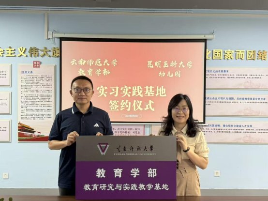 5月23日,云南师范大学教育学部与昆明医科大学幼儿园举行“教学研究与实习实践基地”签约挂牌仪式。此次活动标志着两校在学前教育领域的合作迈入新阶段,为培养高素质学前教育人才搭建了优质平台。挂牌仪式由副园长赵晓华主持。