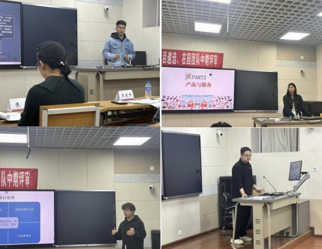 目前在园区的24支团队接受了学校的中期检查。团队成员通过路演来展示项目发展运营情况、优势和未来发展规划等。评委老师从项目的创新性、团队建设、商业性及带动就业前景等多个维度进行综合评价,针对项目现存困难提出针对性建议。评审小组对申请入园的3支团队进行评审:物理与电子信息学院的“峰邦优程”项目,该项目主要关注当今年轻人群体就业问题的简历精改、岗位匹配、笔试面试辅导培训、就业规划与指导等问题;传媒学院的“开心工坊”项目主要开展特色手工文创体验;能源与环境科学学院的“瞳芯花造工作室”专注云南花卉产业智能的鲜花分级机器的研发。评审老师在提问环节根据每个项目的不足及其发展方向给出了指导意见。