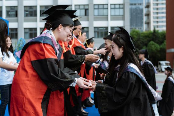 学院学位评定分委员会委员和研究生导师代表为全体毕业生拨穗并发放贺信送上祝福。