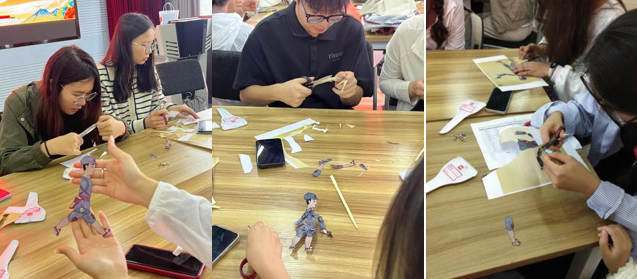 活动创新性地将“刚毅坚卓”的校训精神融入创作实践。在非遗传承人的指导下,党员们以小组协作形式,将红军长征、闻一多“最后一次演讲”、“一二一运动”四烈士等红色故事转化为皮影剧目。当《红军过雪山》《闻一多演讲》等原创皮影剧目在大家手中“活”起来,传统技艺与红色记忆实现了跨越时空的对话。