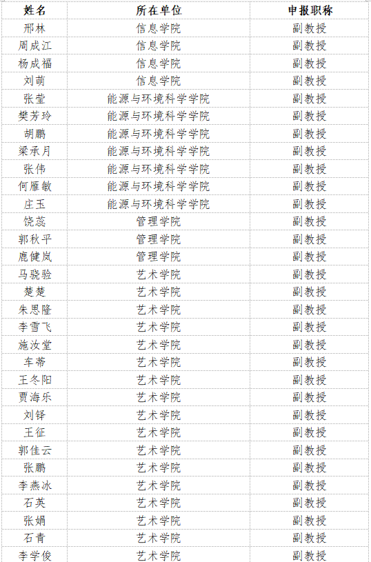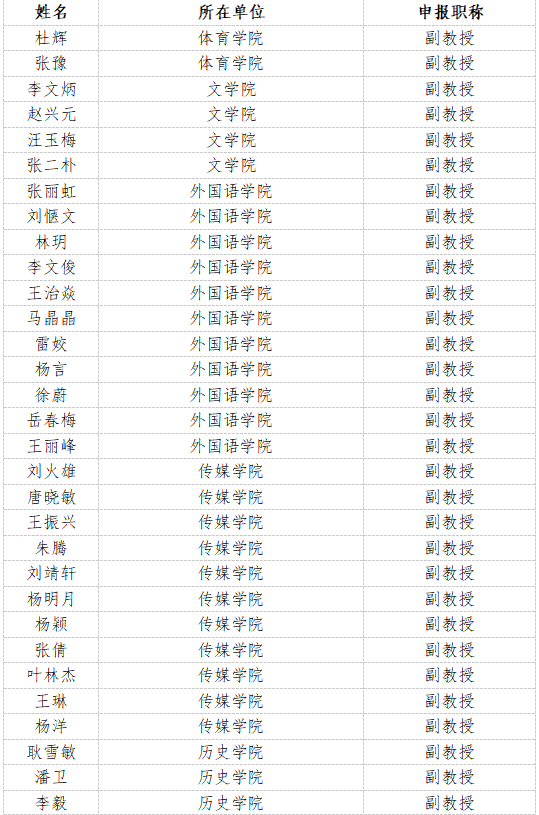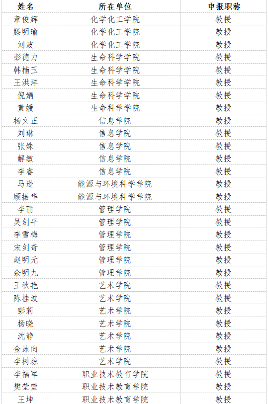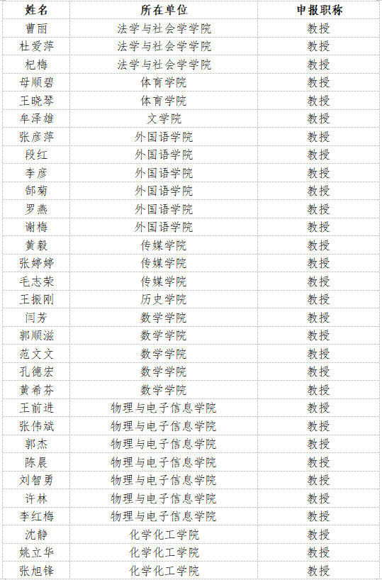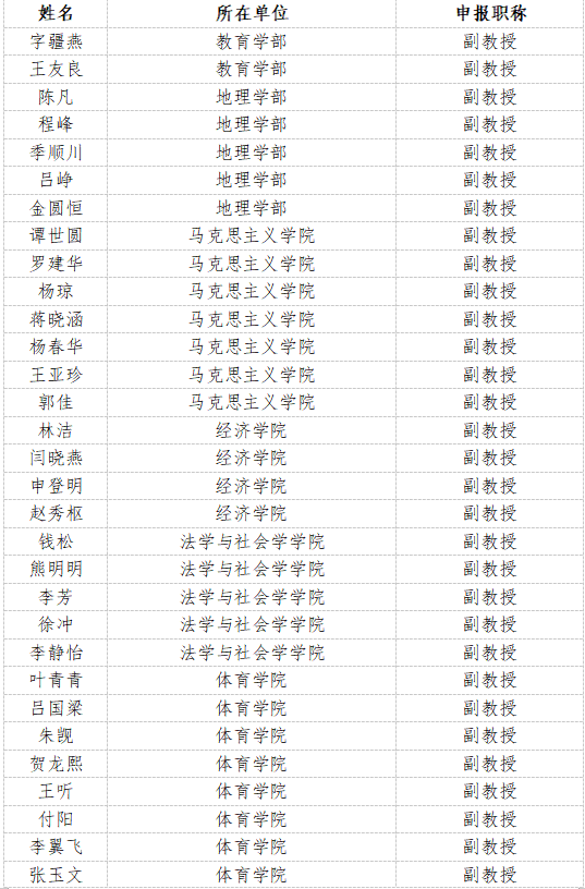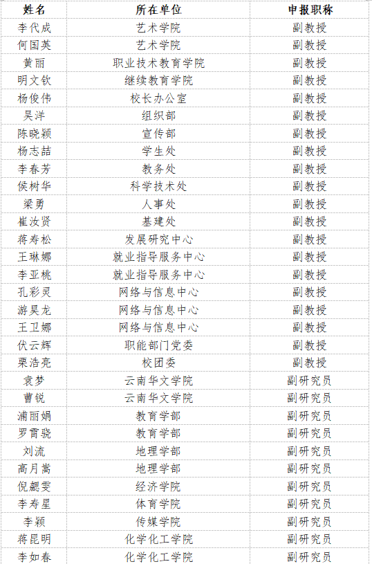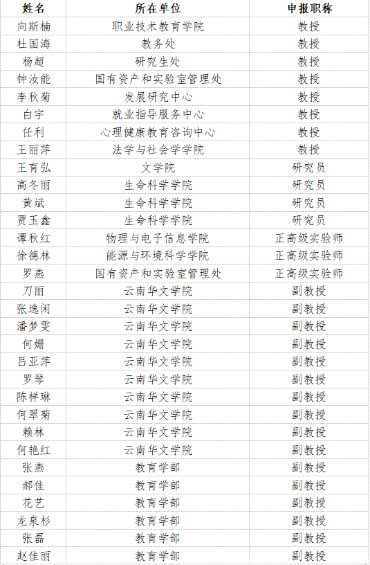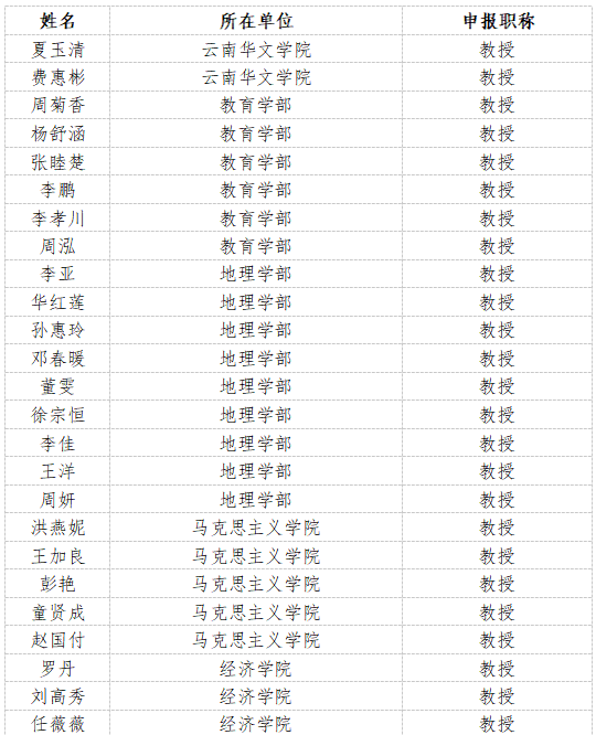 经资格审查,拟同意以下申报评审高级职称人员提交云南师范大学教授副教授评审委员会评审,现进行公示(同部门按姓氏笔画排序)。