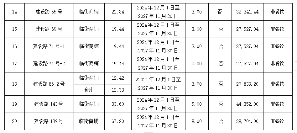 一、竞租标的基本情况如下表: