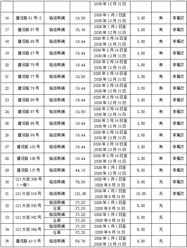 注:所有商铺不得经营酒吧、快递、易燃易爆项目业态,参与竞租的商铺均须上报拟经营业态资料进行审核,审核通过后方可报名参与竞价。