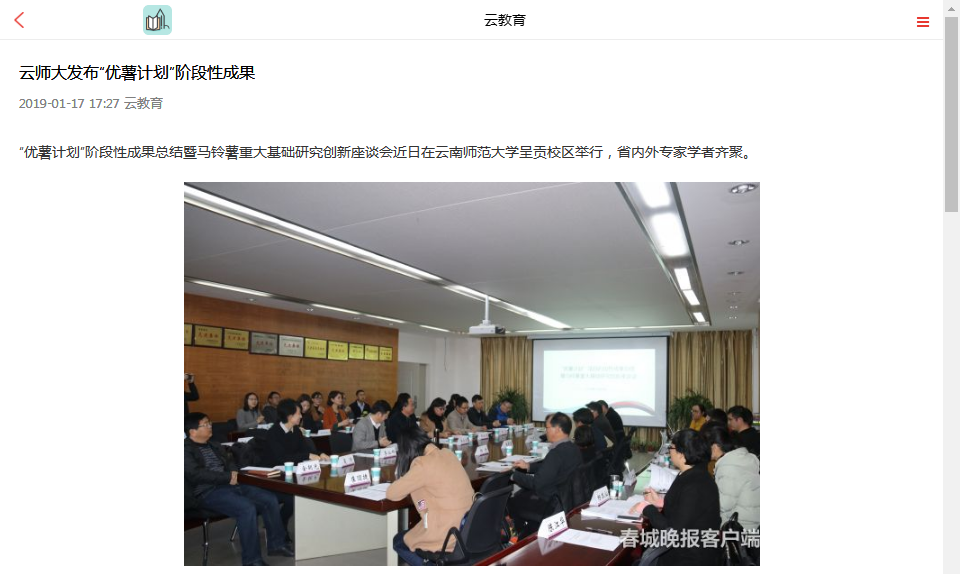 上一条:新华网 2019-01-16 郭明义激励广大青年学子坚定理想信念 下一条:云南网 2019-01-16 云南师范大学马铃薯科学研究院获得重大科研进展