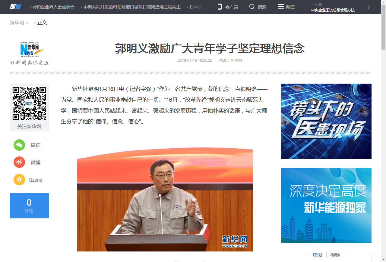 上一条:新华社 2019-01-16 郭明义激励广大青年学子坚定理想信念 下一条:春城晚报 2019-01-17 云师大发布“优薯计划”阶段性成果
