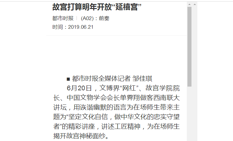 上一条:中国新闻网 2019-06-20 单霁翔揭秘600岁故宫如何炼成“网红” 下一条:云南日报 2019-06-22 西南联大讲坛第三十七讲开讲 故宫学院院长单霁翔主讲