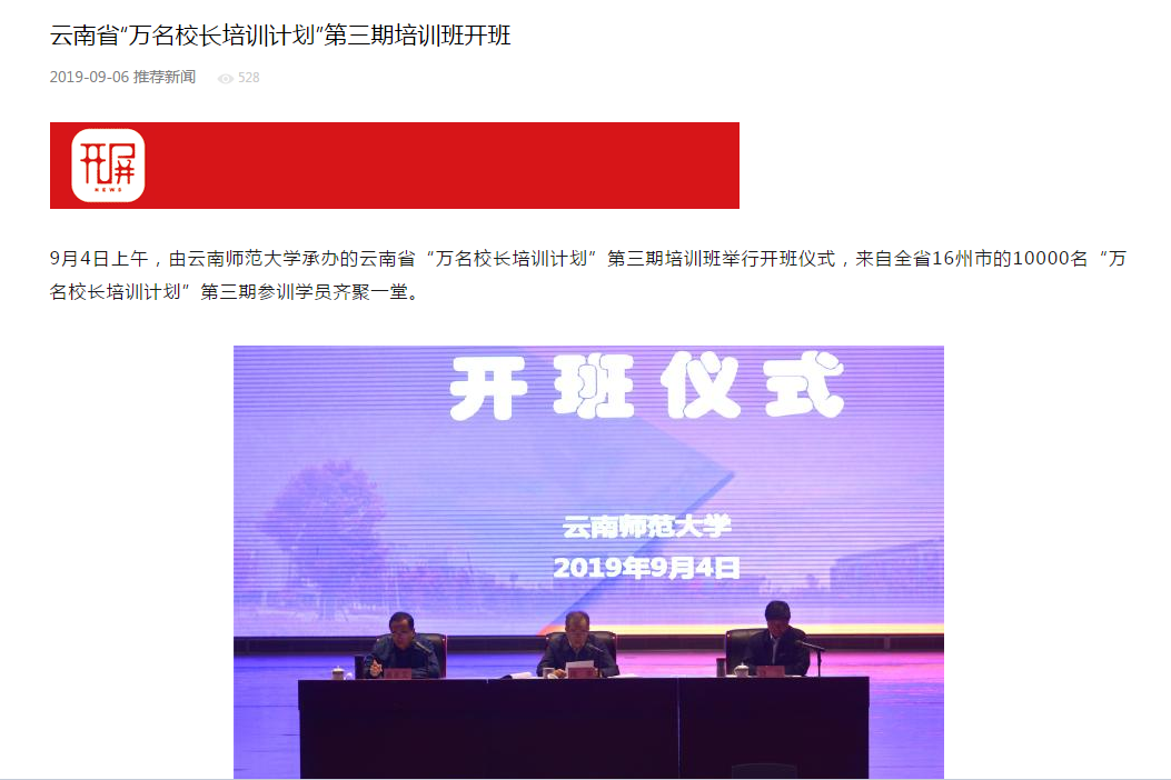上一条:云南日报 2019-09-10 云南师范大学举行庆祝第35个教师节座谈会 为从教35年的教师献花 下一条:新华网 2019-09-06 云南省“万名校长培训计划”第三期培训班开班