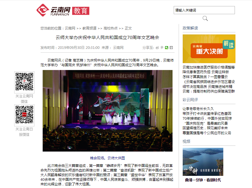 上一条:新华网 2019-09-30 “一二·一”运动四烈士墓广场开展革命烈士纪念活动 下一条:春城晚报 2019-09-30 与国同庆!师大举行庆祝新中国成立70周年文艺晚会
