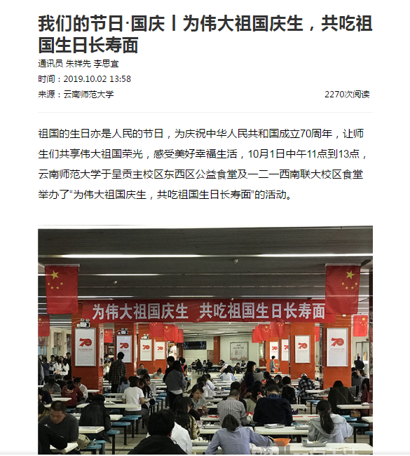 上一条:云南信息报 2019-10-02 云南师大万名师生吃长寿面 下一条:新华网 2019-10-02 近万名师生共享家国情同吃国庆面