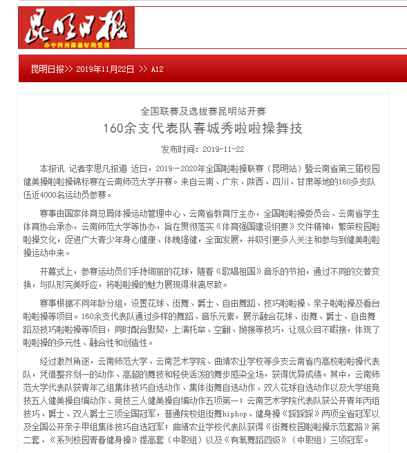 上一条:昆明日报 2019-11-22 全省1300名教卫科系统职工参加气排球赛 下一条:昆明日报 2019-11-22 云南省举行高校教师教学技能大赛