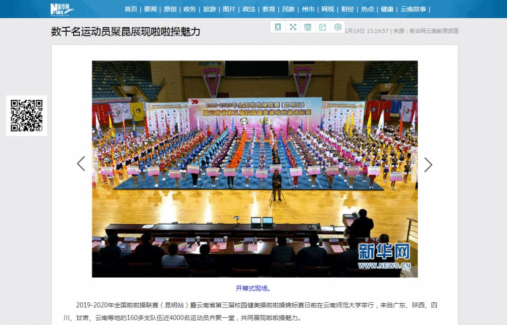 新华网 2019-11-19 数千名运动员聚昆展现啦啦操魅力