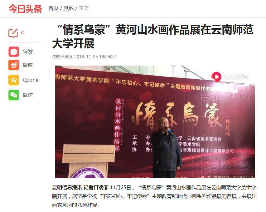 今日头条 2019-11-25 “情系乌蒙”黄河山水画作品展在云南师范大学开展