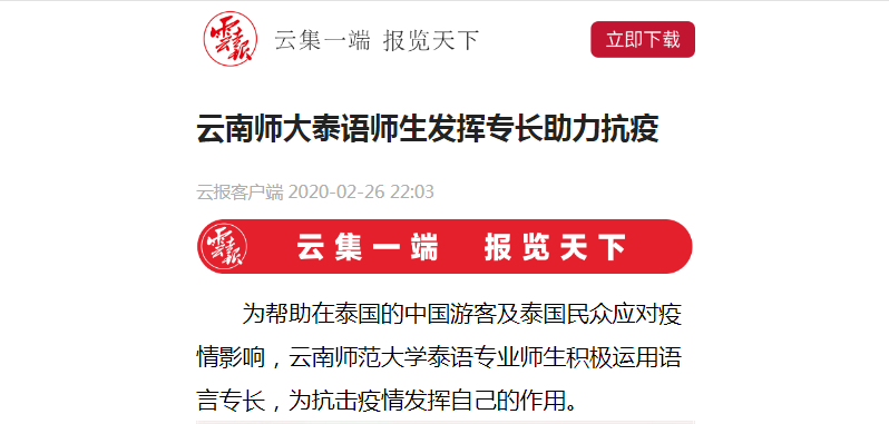 上一条:新华网 2020-02-28 云南师大领衔研发的新型冠状病毒肺炎临床决策支持系统投入试用 下一条:新华网 2020-02-13 致敬云南高校的“逆行者”们
