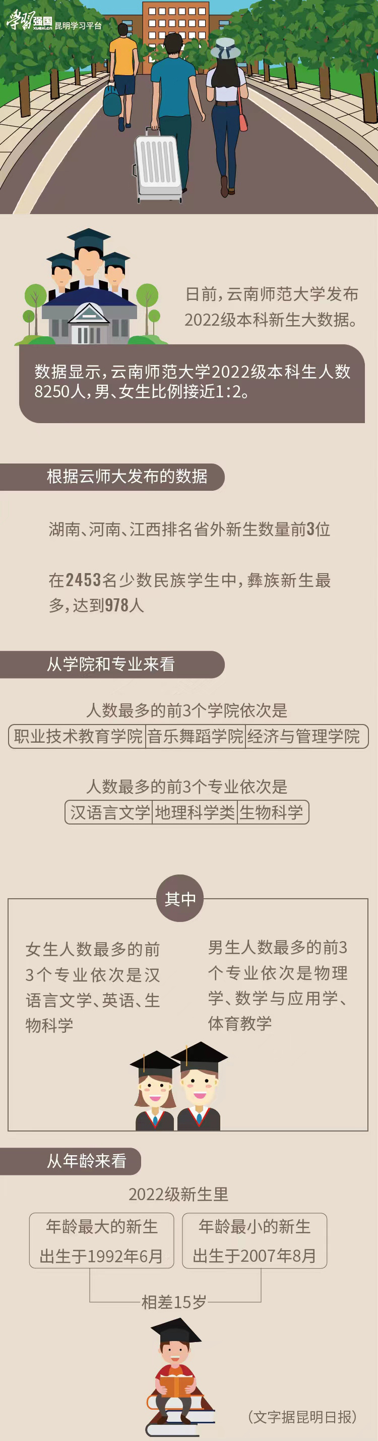 “学习强国”昆明学习平台 2022-10-07 云师大发布新生大数据 男女生比例接近1∶2