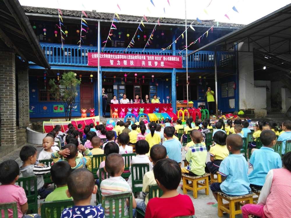2016年10月,附属世纪金源学校组织教师到梁河县芒东中心幼儿园开展“爱心书屋”捐赠活动。