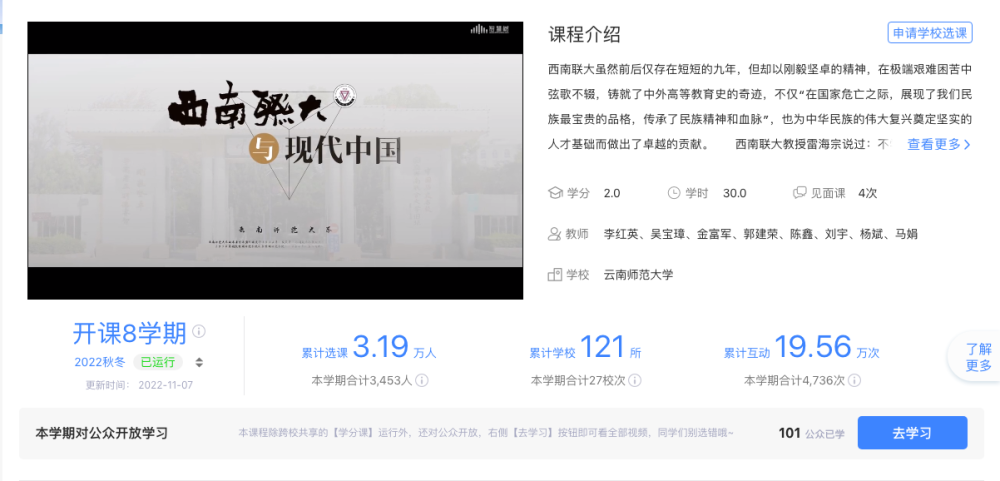 西南联大与现代中国”精品课程。