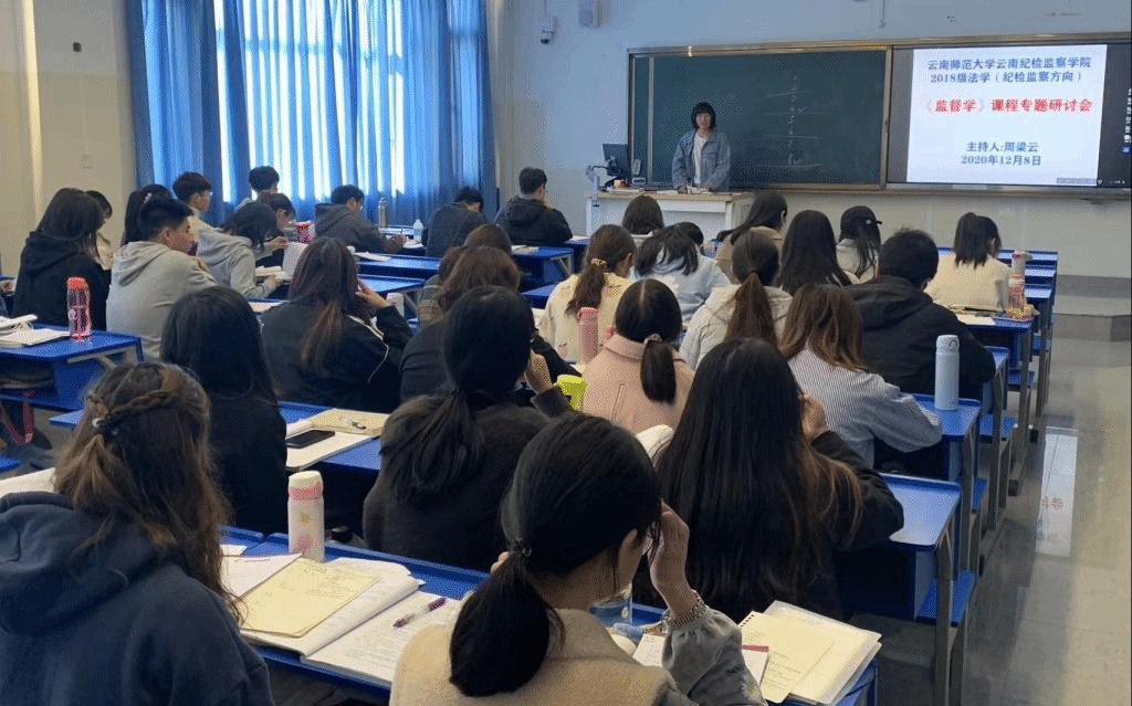 2020年12月,云南师范大学2018级法学专业纪检监察方向学生,举办《监督学》课程专题研讨会。受访者供图