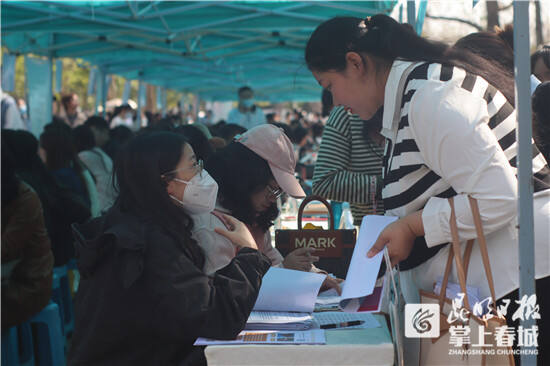 除了2023年应届毕业生,招聘会还吸引2021年、2022年毕业的往届生参加。周楚祺去年从江西师范大学毕业,结合主修的思想政治教育类课程,她给昆明几所学校投了简历,应聘高中政治教师岗位。