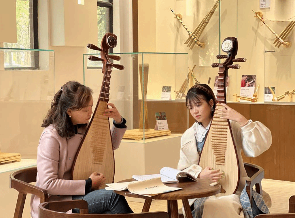 2022年底,利用音乐舞蹈学院教学楼一楼公共空间打造的陈列馆开放了,每个上下课的师生都会路过。有人看到没见过的乐器,会停下脚步仔细端详;有人看到熟悉的乐器,会兴之所至拿起演奏。