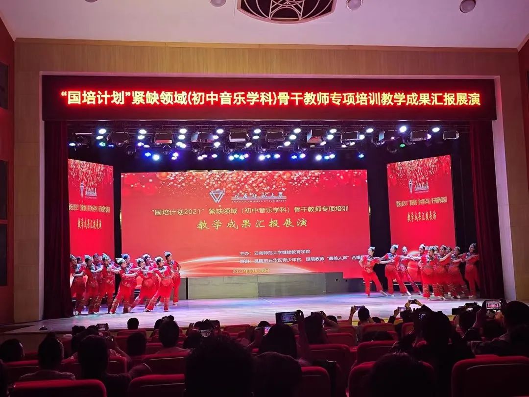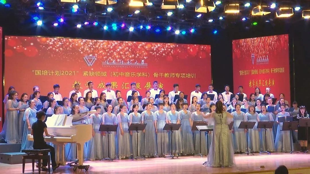 3月28日,由云南师范大学继续教育学院主办的“国培计划2021”紧缺领域初中音乐学科骨干教师专项培训教学成果汇报展演在五华区青少年宫举行,145名来自全省各地的初中音乐教师齐聚一堂,展现学习成果。