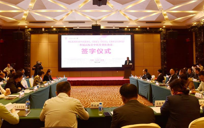 4月4日,云南师范大学与昭阳区、武定县、永仁县、梁河县《省属高校县中托管帮扶》签字仪式在云南师范大学呈贡校区举行。