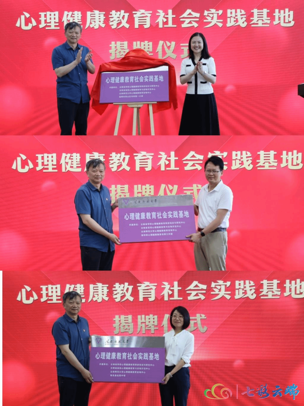 会上云南师范大学心理健康教育咨询中心与昆明市西山区书林第一小学、彭华军心理健康教育名师工作室、陆良县北辰中学进行了共建心理健康教育社会实践基地的挂牌,共同开辟心理健康教育新局面,携手共建咨询服务“试验田”。