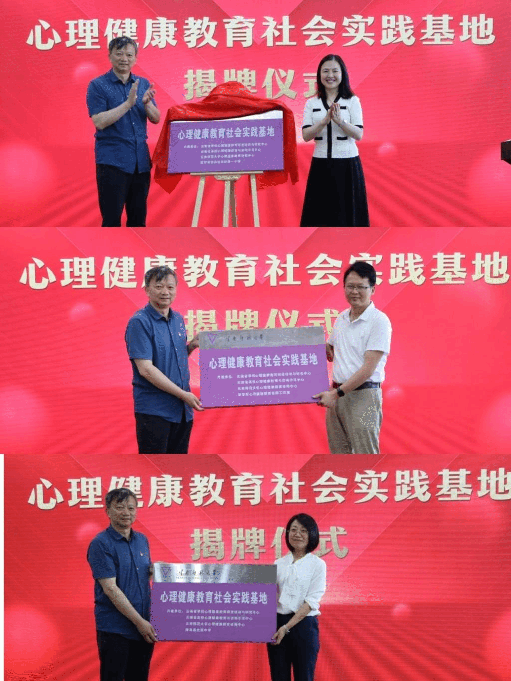 研讨会上,云南师范大学心理健康教育咨询中心与昆明市西山区书林第一小学、彭华军心理健康教育名师工作室、陆良县北辰中学进行共建心理健康教育社会实践基地挂牌,共同开拓心理健康教育新局面,携手共建咨询服务“试验田”。