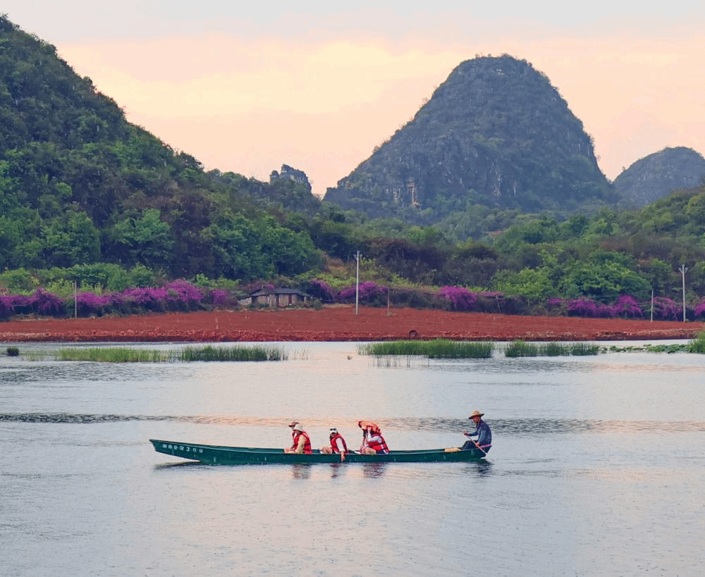 游客乘船在云南省文山壮族苗族自治州普者黑景区仙人洞村游览(2023 年 5 月 30 日摄)兰红光摄 / 本刊