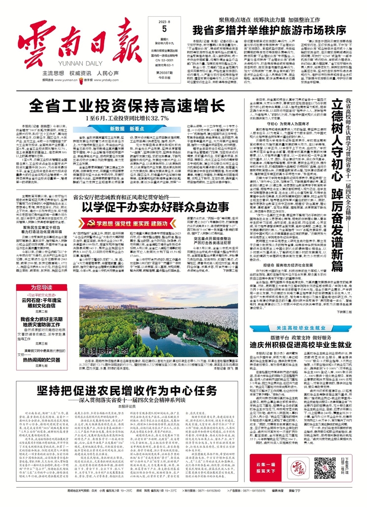连日来,我省高校师生认真学习贯彻省委十一届四次全会精神。大家纷纷表示,要更加紧密地团结在以习近平同志为核心的党中央周围,以深入推进主题教育为契机,把牢正确办学方向,以实际行动回答好“培养什么人、怎样培养人、为谁培养人”的时代之问,为推进中国式现代化的云南实践提供有力人才支撑。