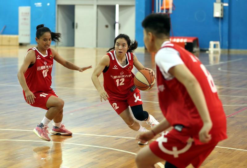 动作迅速、眼神坚定,默契配合、攻守有度……宽敞明亮的篮球馆里,篮球女队正在为下半年即将开启的多场比赛积极备战。训练场上,在一次次不断传球、断球、突破和防守中,女篮队员的风采尽显。“坚持、团结、奉献、感恩”这是学校女子篮球队主教练欧阳宇华经常教导队员的“8字箴言”。欧阳宇华带领云师女篮走过19年的时光,从无人接担到开始组建校女子篮球队,再到亲自带队参加比赛,她把所有的热爱都献给了篮球事业和女子篮球队员们。欧阳宇华相信,体育一定也能像其他专业学科一样,在青年学子身上留下“印记”。她说:“女子篮球队员们一茬一茬地来,又一批一批地离开,我希望大学四年的篮球训练能为她们的人生添上不一样的色彩,希望她们在人生的任何‘赛场’上都能做到最好、不留遗憾。”