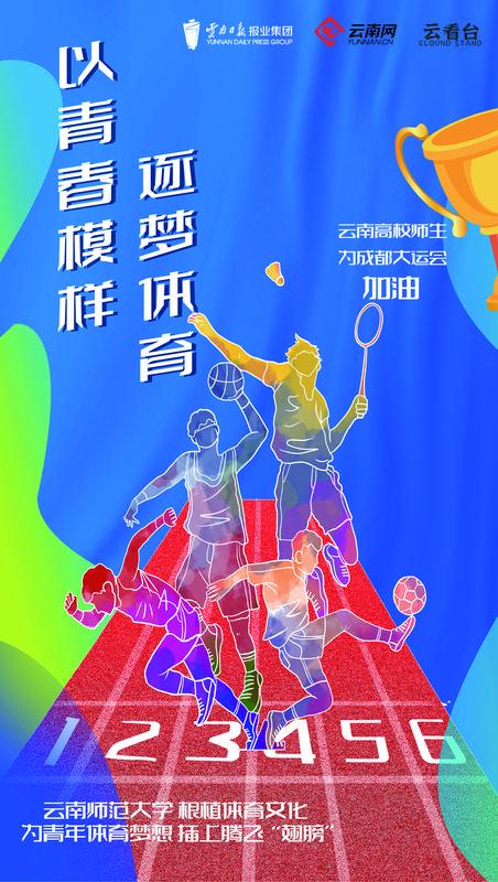 随着越来越多的青年人参与大运会、关注大运会,这场“青春追梦之旅”感召着全国各地的青年学子为大运加油、为梦想喝彩。来自云南高校的学子们也用自己的方式为这场盛大赛事助威,绽放青年人努力奋斗的精彩,迸发出蓬勃向上的青春活力。