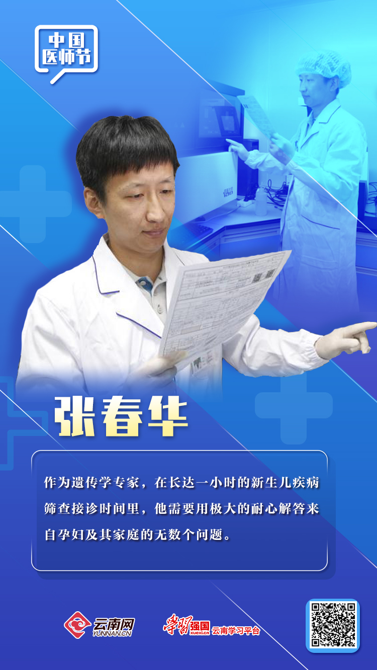 云南省妇幼保健院是全省出生缺陷防治管理中心、省级新生儿遗传代谢病筛查中心和省级产前诊断中心。张春华从2012年入职后考取博士研究生,师从国内知名医学遗传学专家梁德生和邬玲仟教授,毕业后回院开设遗传专科门诊,完成了多例疑难遗传病患者的精准诊断。11年间,张春华一直从事遗传咨询、产前诊断和新生儿疾病筛查的临床和科研工作,发表SCI论文10篇。
