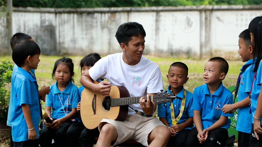 特岗教师倪华带学生们一起唱歌(8月31日摄)。景谷县融媒体中心 供图