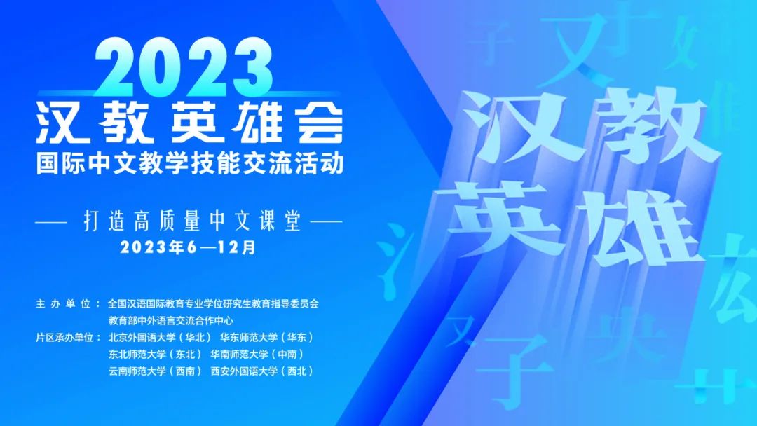 2023“汉教英雄会”国际中文教学技能交流活动由教育部中外语言交流合作中心与全国汉语国际教育专业学位研究生教育指导委员会联合举办,活动分为东北、华北、华东、西南、西北、中南六个片区展开,其中西南片区由云南师范大学承办,为西南片区队伍搭建交流互动平台。活动开启后,西南片区各高校师生积极组建交流团队参与,活动共吸引来自云贵川渝四省市的7支教师队伍、17支学生队伍参与。