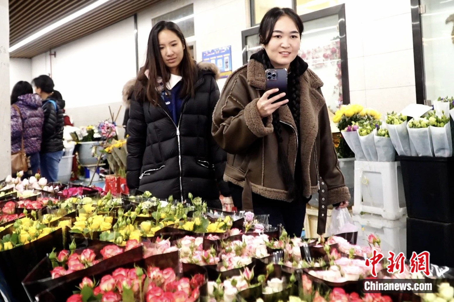 图为苏禾与朋友逛昆明斗南花卉市场。袁鸿凯 摄