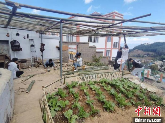 图为龙潭中心学校学生们自己动手,修建蔬菜种植园。龙潭中心学校 供图