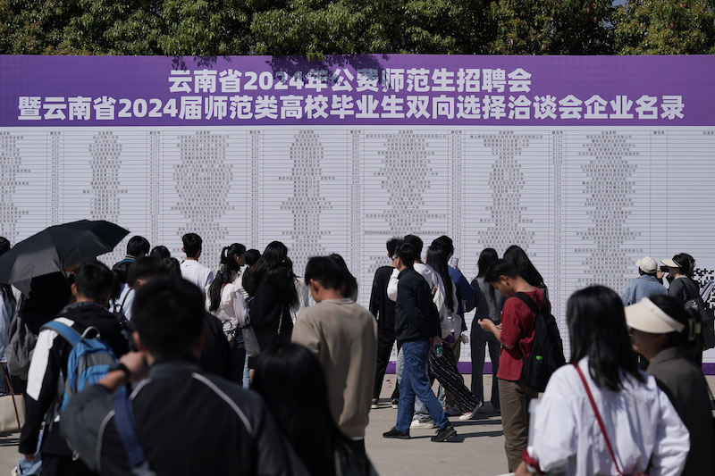 3月23日,由中共云南省委教育工委、云南省教育厅主办,云南师范大学和云南省大中专毕业生就业服务中心承办,各州市教育体育局、云南省人才市场、昆明市公共就业和人才服务中心、云南省高校毕业生就业促进会协办的“云南省2024年公费师范生招聘会”暨“云南省2024届师范类高校毕业生双向选择洽谈会”在云南师范大学呈贡主校区西区篮球场举行。