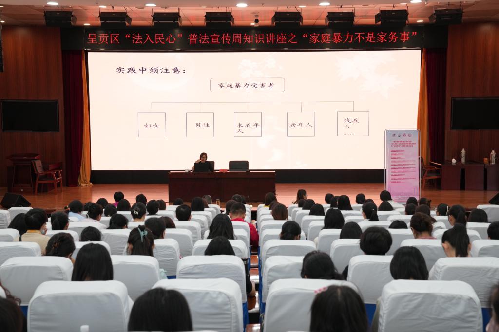 活动现场,云南师范大学法学与社会学学院杜爱萍副教授作题为《家庭暴力不是家务事》的第一场专题讲座。 据了解,此次普法宣传周活动为期一周,充分发挥呈贡高校人才资源优势,由云南师范大学法学与社会学学院牵头组织高校教师和青年学生,联合呈贡区各级妇联组织,在呈贡区各街道及中小学校等部门开展10 场讲座。通过校地合作的方式,针对不同的普法对象,探索创新精准普法模式,就群众普遍关心的邻里纠纷、婚姻家庭、家庭暴力、未成年人保护等内容,以群众喜闻乐见的方式,开展形式多样的法律普及进基层、进学校、进机关、进家门等“法入民心”普法宣传活动,营造全民学法知法守法氛围,助力法治社会建设。