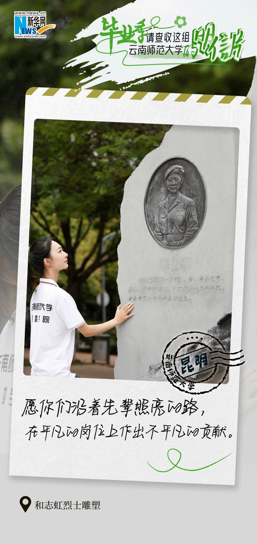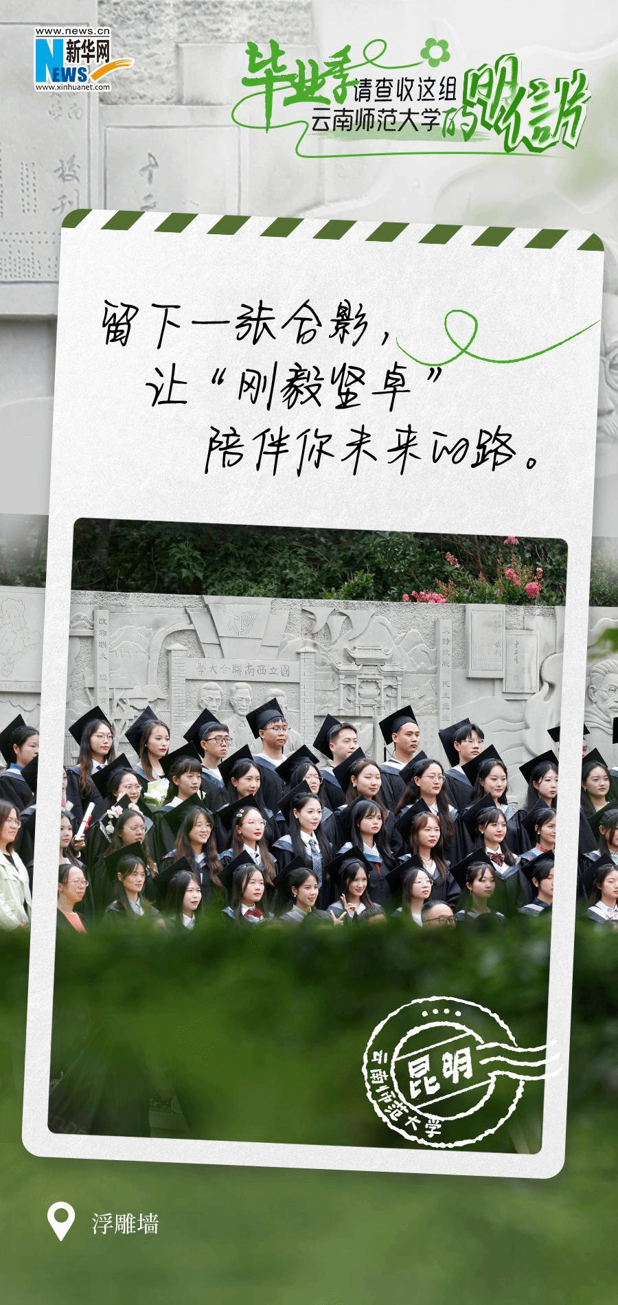 又是一年毕业季,云南师范大学毕业生的毕业照有些特别——有的毕业生在南湖旁留下影像,有的在校歌墙前定格毕业瞬间,有的则在浮雕墙旁与西南联合大学的历史留下合影……在这所传承着西南联合大学“刚毅坚卓”精神的高校里,一批批毕业生从这里出发,为教育事业贡献着青春力量。