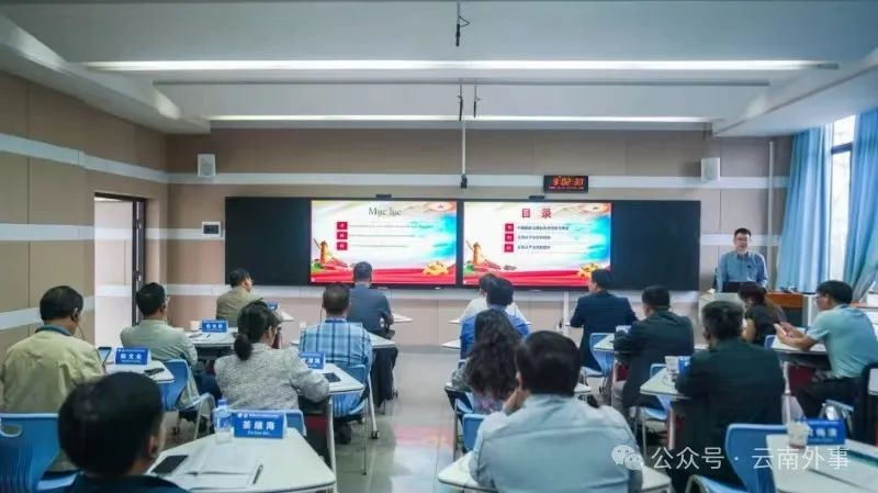 9月8日,研修班开班仪式在云南师范大学举行。云南省监委委员路晓琨、云南师范大学党委书记张祖武、云南省外办副主任杨绍成,越南参训团团长、莱州省委检查委员会副主任庄德平,越南驻昆明总领事黄明山出席并致辞,云南师范大学校长、云南纪检监察学院院长胡金明主持。