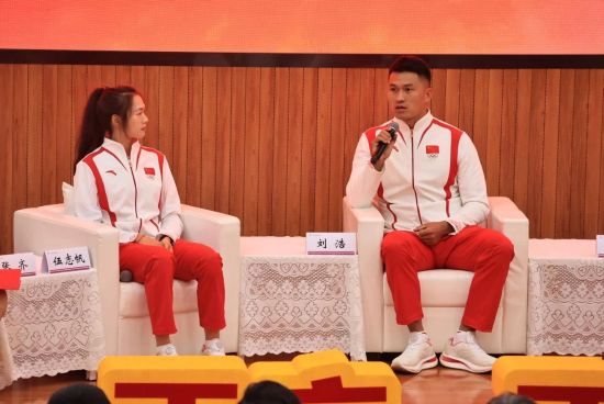 在沙龙交流环节,刘浩、杨绍辉、张德顺、伍志帆分别畅谈了自己的奥运参赛经历与备战奥运的艰辛拼搏历程。